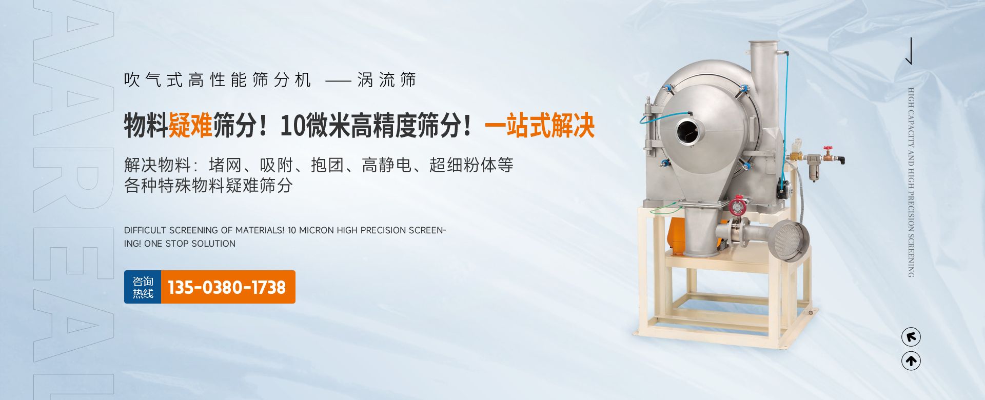 阿 瑞 爾(AAREAL)? 是從事篩分·過濾設備設計和制造的高新技術企業,擁有先進的生產設備、粉體篩分分析實驗室,在中國廣州市設辦事處。祝賀:新鄉市超大產能精細篩分技術工程中心在阿瑞爾(AAREAL)成立?。?!在線大產能篩分和在線動態過濾是阿 瑞 爾(AAREAL)?的產品特點■ 在線大產能篩分,突破了傳統篩分觀念,工業化篩分,實現大產能、高能效篩分。以低故障率、低停機率、低使用成本、高產能、高精度、高能效為您帶來巨大意外收益?!?阿瑞爾(AAREAL)擁有的回轉篩分技術,擁有的近百種篩分解決方案及上千種物料的篩分經驗,會給您展現全新的篩分設備,幫您實現大產能篩分 高精度篩分 疑難篩分?!?阿瑞爾(AAREAL)的品質保證:阿 瑞 爾(AAREAL)? 是高品質篩分設備制造商高品質是阿 瑞 爾(AAREAL)? 質量準則。優品設備 合理篩分是阿 瑞 爾(AAREAL)?回報客戶的驗收標準?!覀儾坏珦碛邢冗M的生產設備,而且對于每一道工序,每一個細節,我們都要精工細作。對于客戶的每一個細微的問題,我們都要認真解決?!闹谱骱陀眯姆帐俏覀儗蛻舻呢熑?。阿瑞爾(AAREAL)是您成功道路上值得信賴的、合作伙伴,以良好的質量、經驗和服務享譽多個國家,確保您安心地選擇每一件產品,阿瑞爾(AAREAL)竭誠與國內外商家雙贏合作,共同發展,共創輝煌!阿瑞爾(AAREAL)——您正確的選擇。